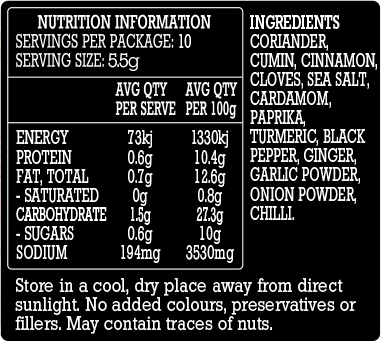 The savoury earthy taste and aroma of Africa is perfect to add to any meal. Use as a flavouring for stews, tagines, rice dishes and as a rub on meats. A great blend of bold flavours with inspiration. Great on the barbeque also and smoked meats and used in slow cookers.